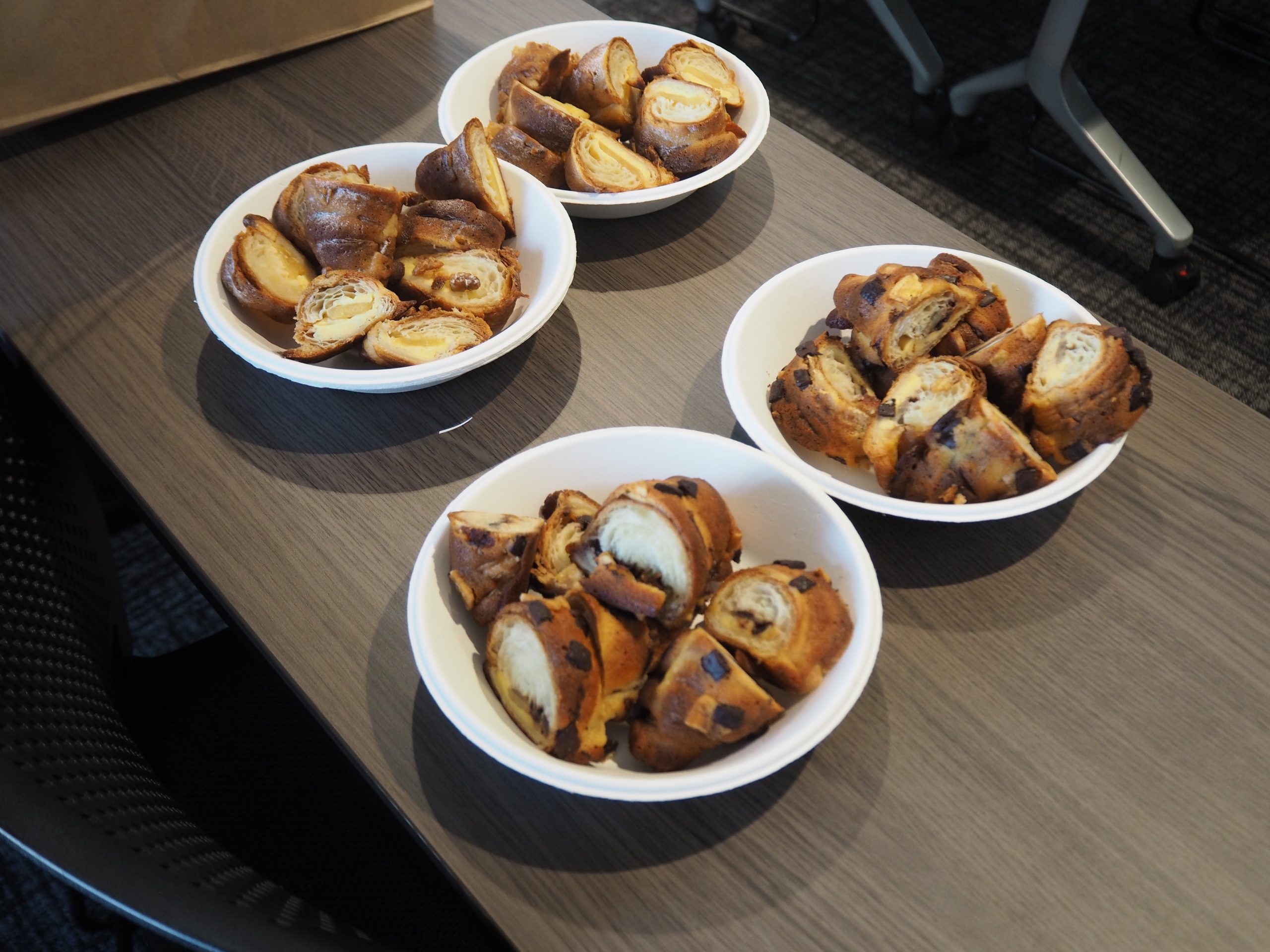 榎さんセレクトのパンをいただきながら、参加者のみなさんで、楽しく会話が盛り上がりました。「ここのパン、知っていますか?」「おいしいですよね、大好きです」「知りませんでした!今度行ってみます」。パンシェルジュたちによる憩いの場、情報交換の場として成立していることに筆者も嬉しくなりました。ちょうど大阪万博が開催していることもあり、万博で食べられるパンの話もありました(一部榎さんが関わっているというお話も)。
