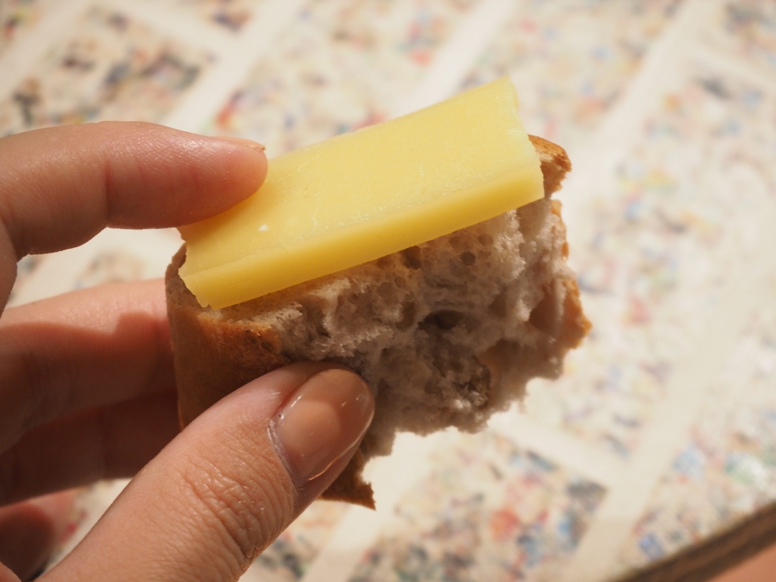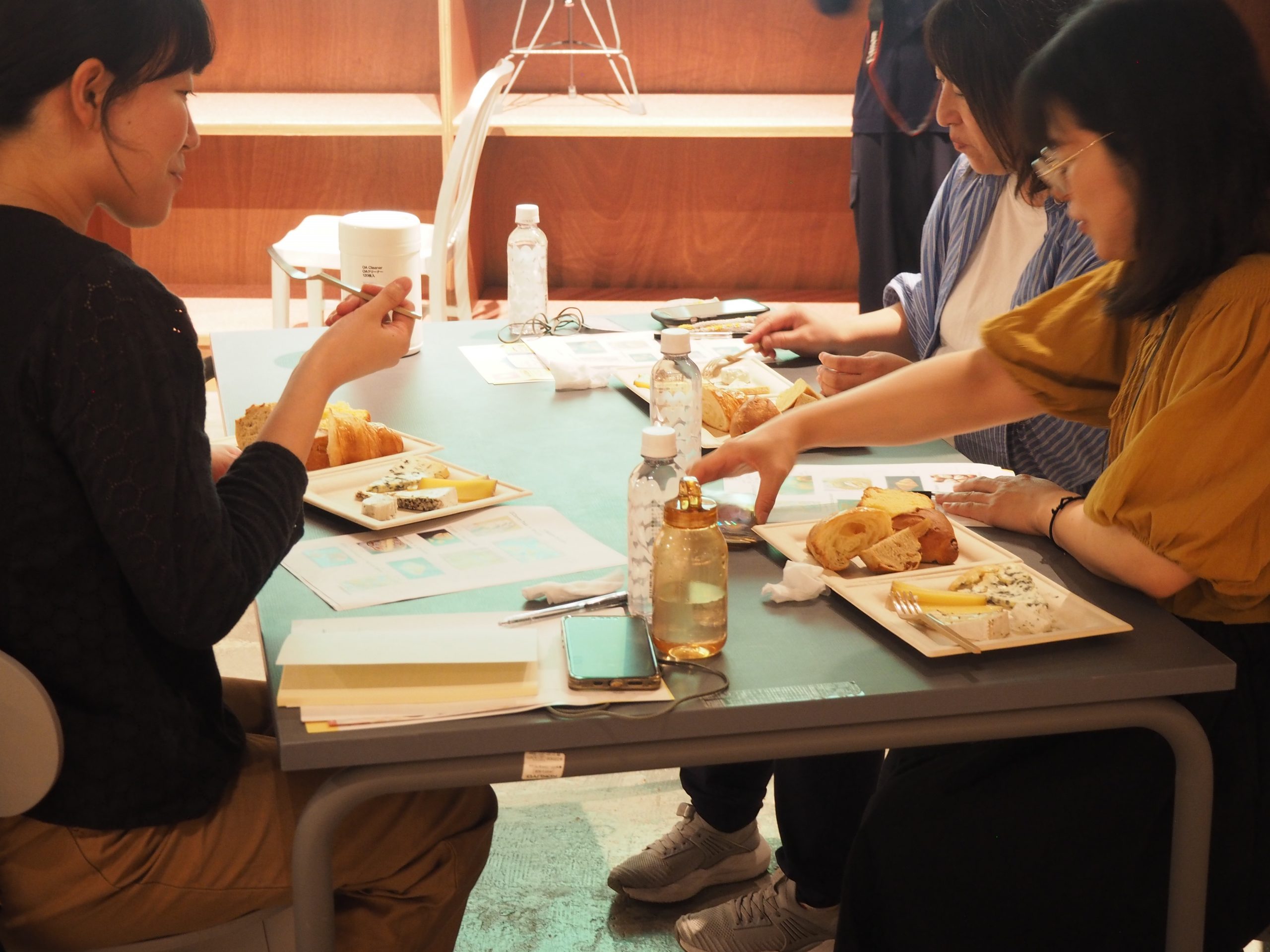 チーズそれぞれの特徴がわかったところで、いよいよパンとのペアリングです。今回は、4種類のパンとチーズの組み合わせを試食しました。