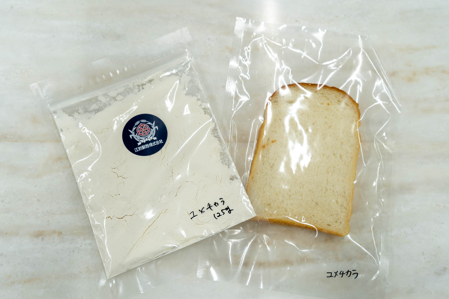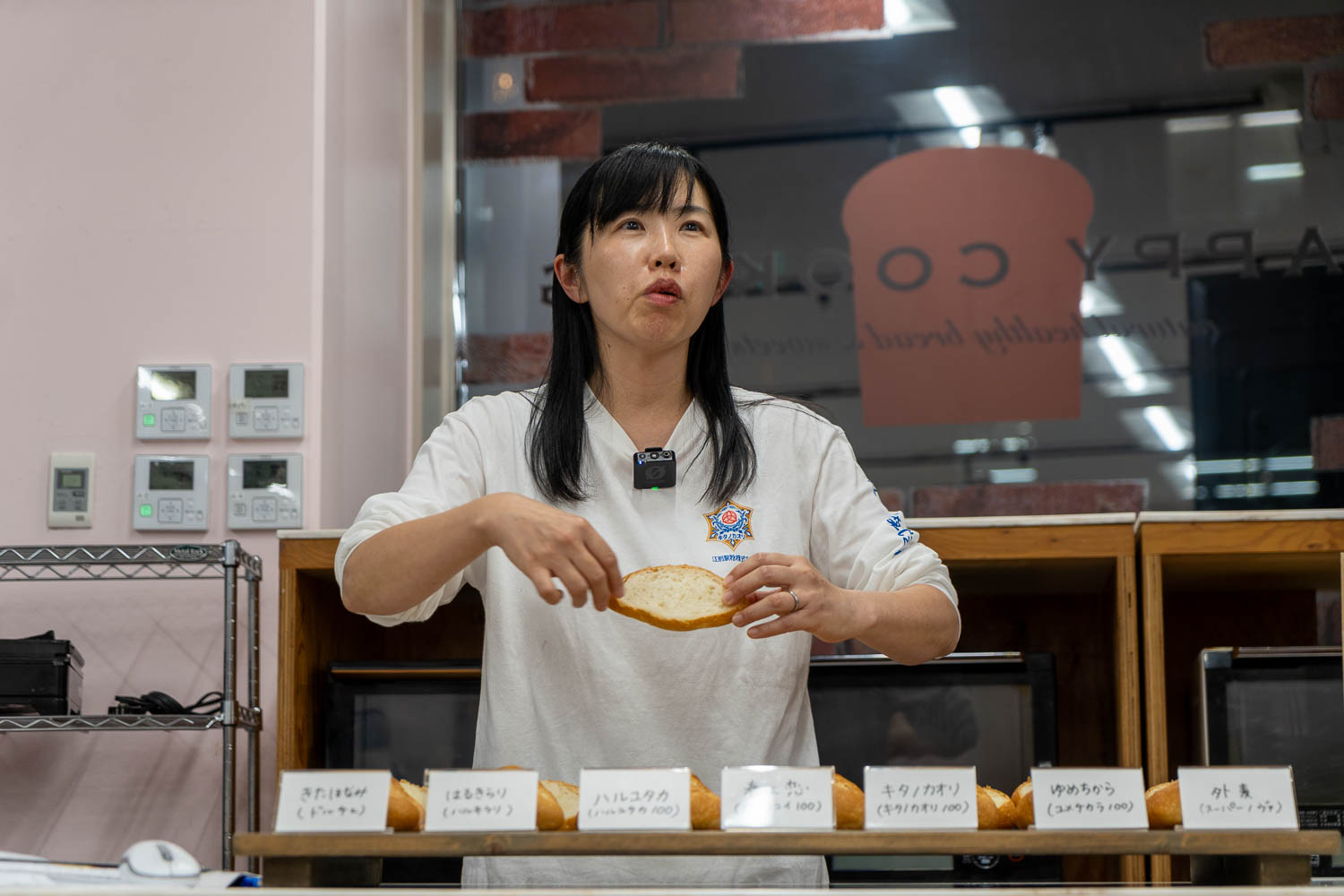 試食用にと高野さんが3種類の小麦で作った食パンが用意されていました。「『きたほなみ(ドルチェ)』、『ゆめちから』、『キタノカオリ』の順番で食べてみてください」と高野さん。