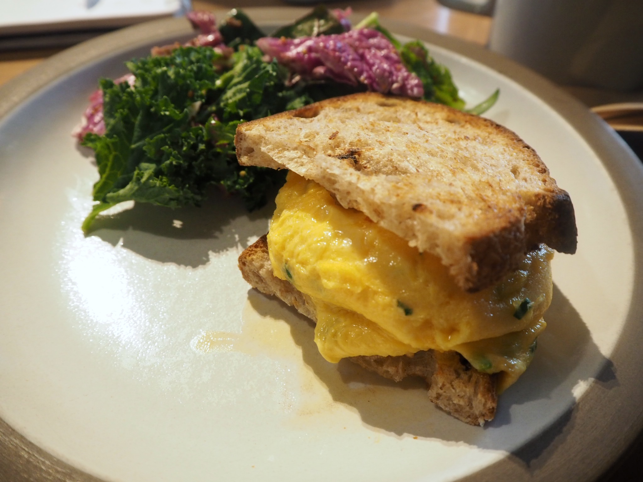 唯一のサンドイッチメニューは、カンパーニュに厚焼きのオムレツがサンドされた一品。