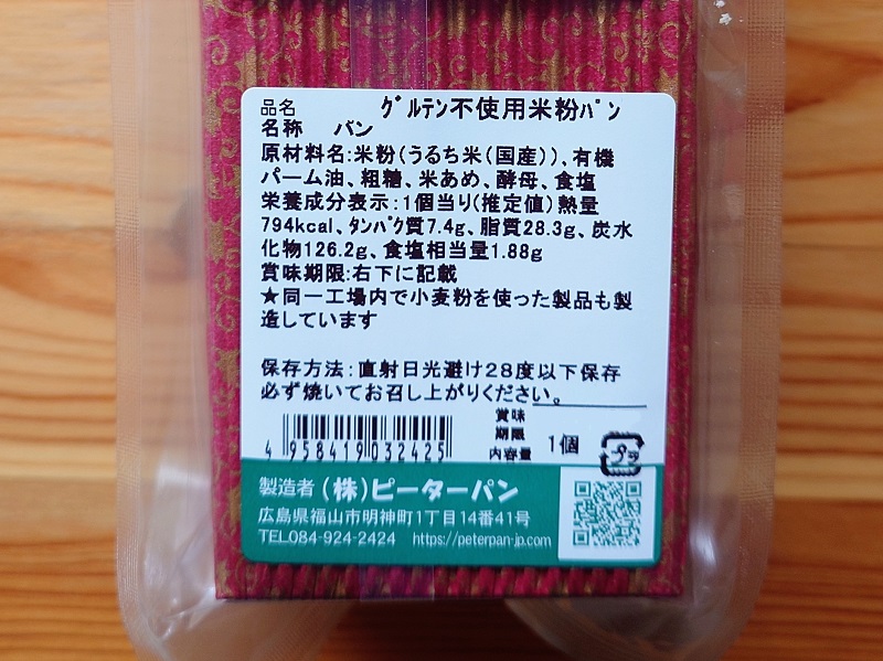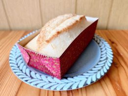 一見パウンドケーキのようなフォルムのこちらは、国産米粉100%でつくった小麦グルテン不使用の米粉パン。米粉のほかの原材料は、有機パーム油、粗糖、米あめ、酵母、食塩とシンプルです。