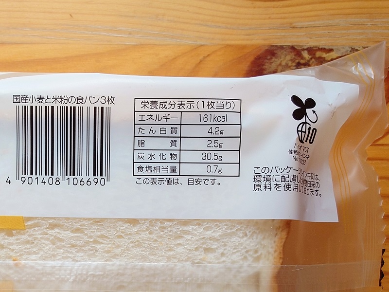 第2位:161kcal「国産小麦と米粉の食パン 3枚」