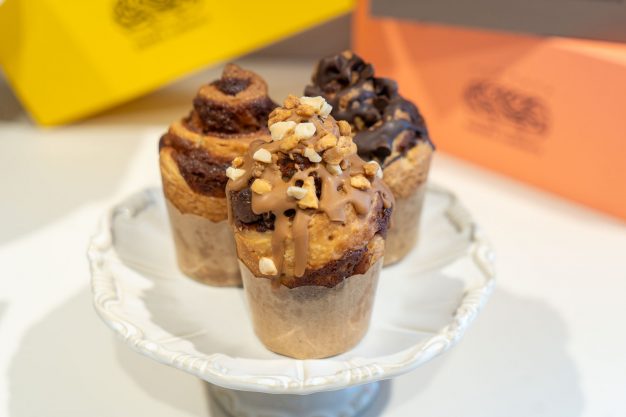 気軽に食べられるカップサイズの「バブカップ」は3種類。デニッシュ生地にオリジナルのブラウニー生地を塗り広げてからくるくると巻いてカップに入れて焼いています。シンプルなオリジナル、焼き上げてからチョコレートとチョコチップをかけたチョコレート、オリジナルにキャラメルチョコレートとナッツを合わせたキャラメルの3種類があります。「バブカップ」は生地を編むのではなく巻いているのでバブカとは食感に違いがあるところも楽しいポイントです。