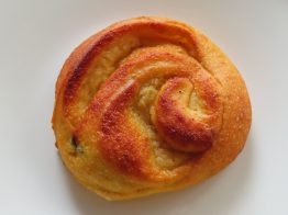 スイーツ系では「シュネッケ」です。かぼちゃのブリオッシュ生地をベースに、アーモンドクリームやカスタードクリームを巻き込んでいます。以前勤めていたホテルの朝食で出ていたシュネッケが好きで、お店でも出したいと思いました。