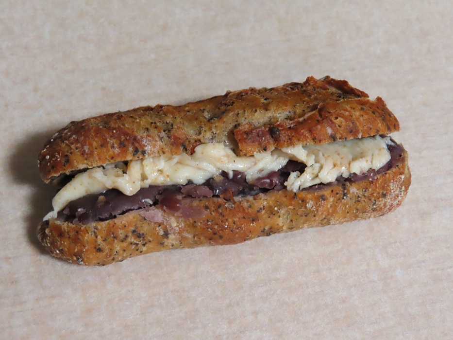 まず、「自家製あんこと焦がしバター」です。紅茶やクルミを練り込んだハード系の生地に、自家製のつぶ餡をサンドしました。フランス料理の技法で作った「焦がしバター」を乳化してのせた、香ばしいバターの風味を楽しんでいただけるひと品です。