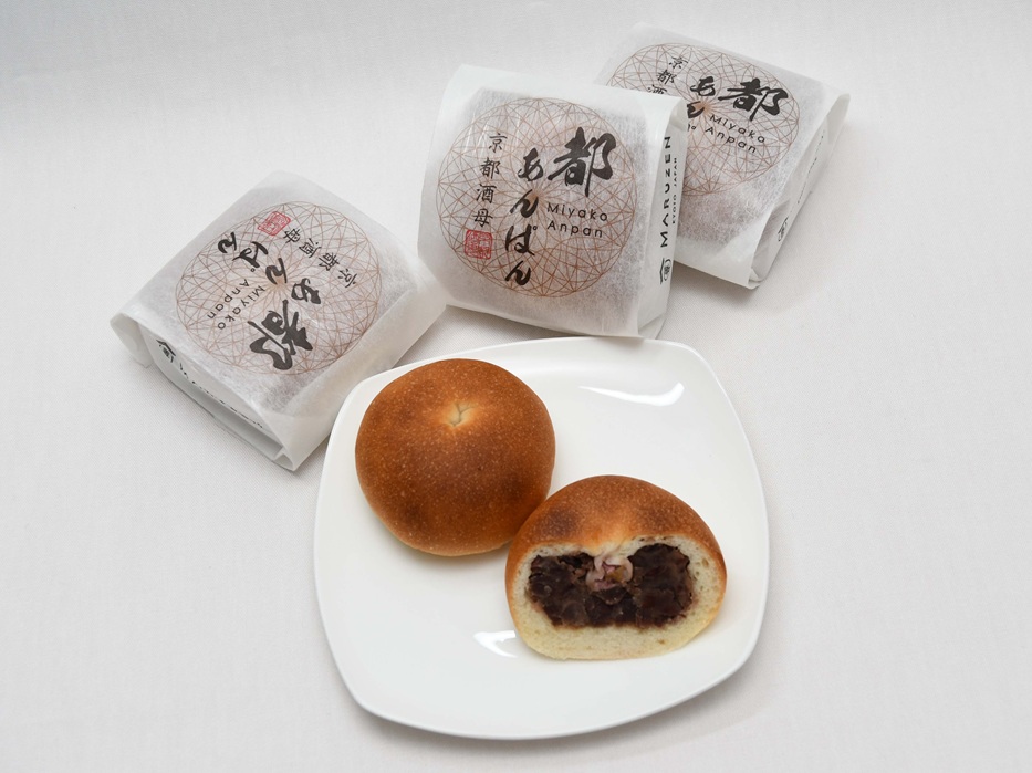 看板商品は、京都産米と「菱六」の種麹で作った自家製甘酒に、伏見・北川本家の「富翁」の酒酵母を加えて醸した天然酵母で生地を仕込む「酒母」シリーズ。十勝産えりも小豆と、ミネラル豊富な奄美諸島産さとうきびの砂糖を使った、香り豊かでコクのある餡を包んだ「都あんぱん」など、パンづくり一筋の製パン部門チーフ・椎葉秀樹氏の高い技術力に支えられた人気のシリーズです。